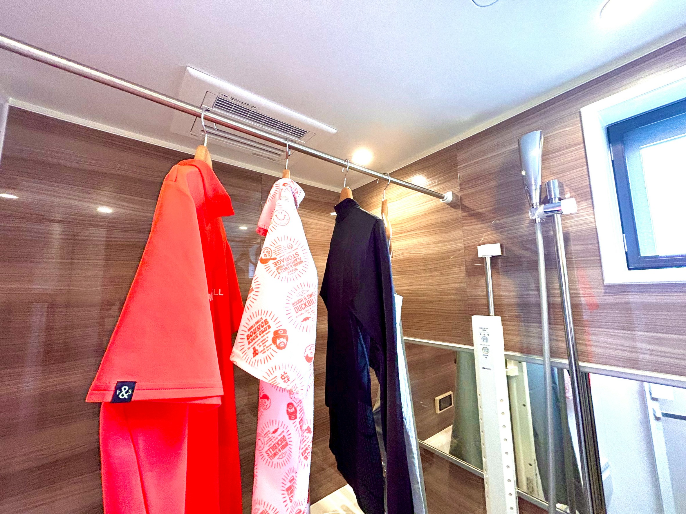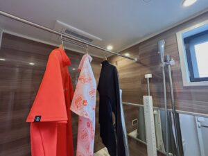 ↳屋外・部屋干しだと「生乾き臭」や「湿気残り」「カビ発生」の心配もありますが、浴室乾燥機能なら短時間で乾かせ、湿気も排出できるため、用具・ウェアをきれいに保てます。
